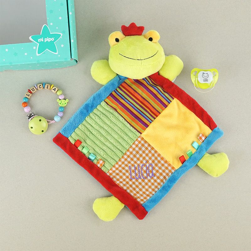 It includes: - Dou-Dou Custom Big-Ears - Custom Wooden Chain - Personalized Baby Pacifier size 0m - Personalized Pacifier Holder - Gift box (design may vary depending on availability) - Maximum 9 characters