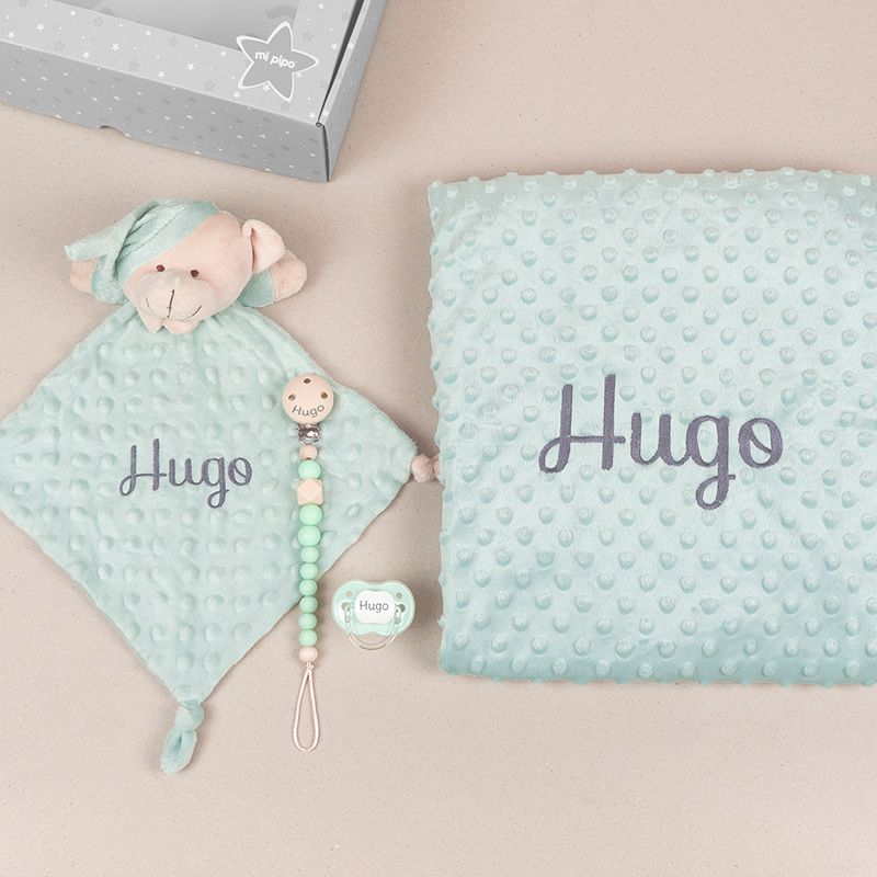- Dou-Dou custom heads - Personalized Baby Pacifier 0m - Custom Metallic Clamp Brooch - Body Babidu personalized birth long or short sleeve - Gift box (design may vary depending on availability) - Maximum 10 characters