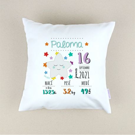• Puedes escribir el nombre del bebé en mayúsculas (ALBERTO) o bien la primera letra en mayúscula y el resto en minúsculas (Alberto). Tienes un máximo de 10 letras para escribir distribuidas en una línea, ten en cuenta que cuanto más largo sea el texto más pequeña se verá la letra.