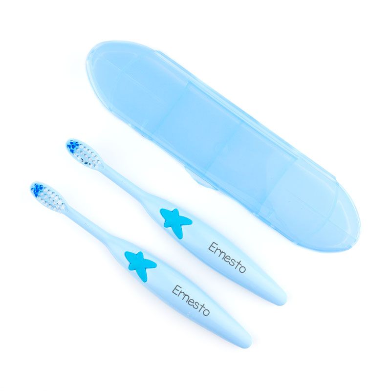 Set 2 Tooth brushes with case Personalized Blue +6Months