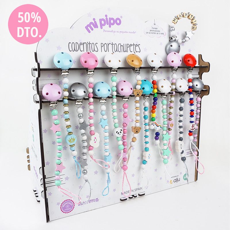 - The perfect complement for our pacifier display, gets the cross selling of pacifier + wooden chain.