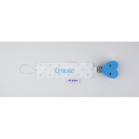 Wood Clip-Clamp Textil Little Star Heart Blue Personalized