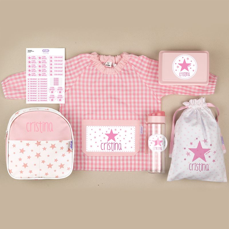 Pack Mi Guarde Estrellas Rosa personalizado + Regalo Cajita porta alimentos