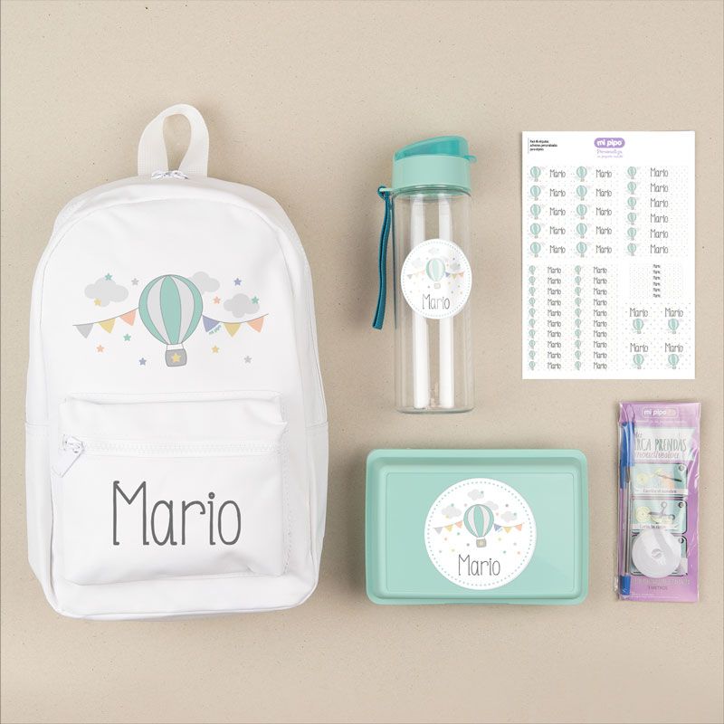 Pack Mi Equipo para el Cole con Mochila Globo personalizado + Regalo Marcaprendas