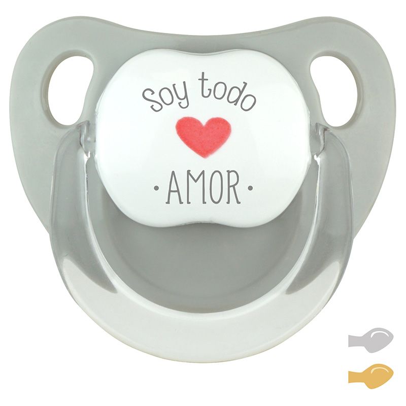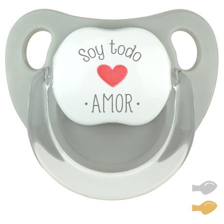 Chupete Baby Deco Gris Corazón Rojo Soy todo Amor (LIQUIDACIÓN 50% DESCUENTO)