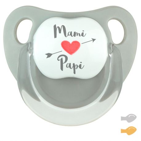 Chupete Baby Deco Gris Mami corazón flecha Papi (LIQUIDACIÓN 50% DESCUENTO)