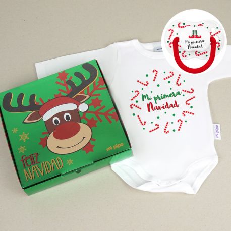 Cajita Navidad Body + Chupete New Classic Elfo Bastones Mi primera Navidad Ver más grande