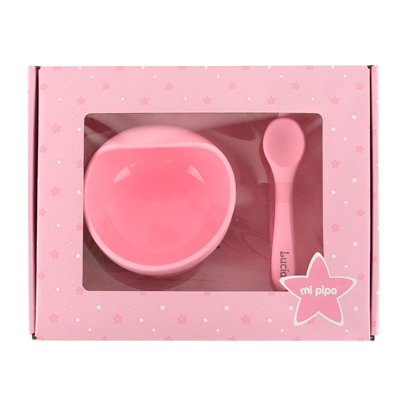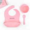Vajilla con babero, bol y cuchara de silicona Rosa Candy Personalizada