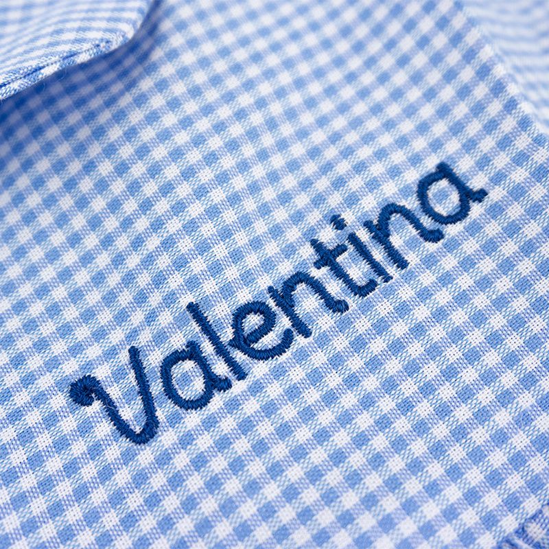 - Se personaliza el pecho bordado. Máximo 20 caracteres en dos líneas.