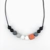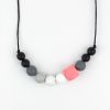 - Collar con doble función: entretiene al bebé mientras está lactando y calma las molestias de la dentición porque las piezas de silicona se pueden morder