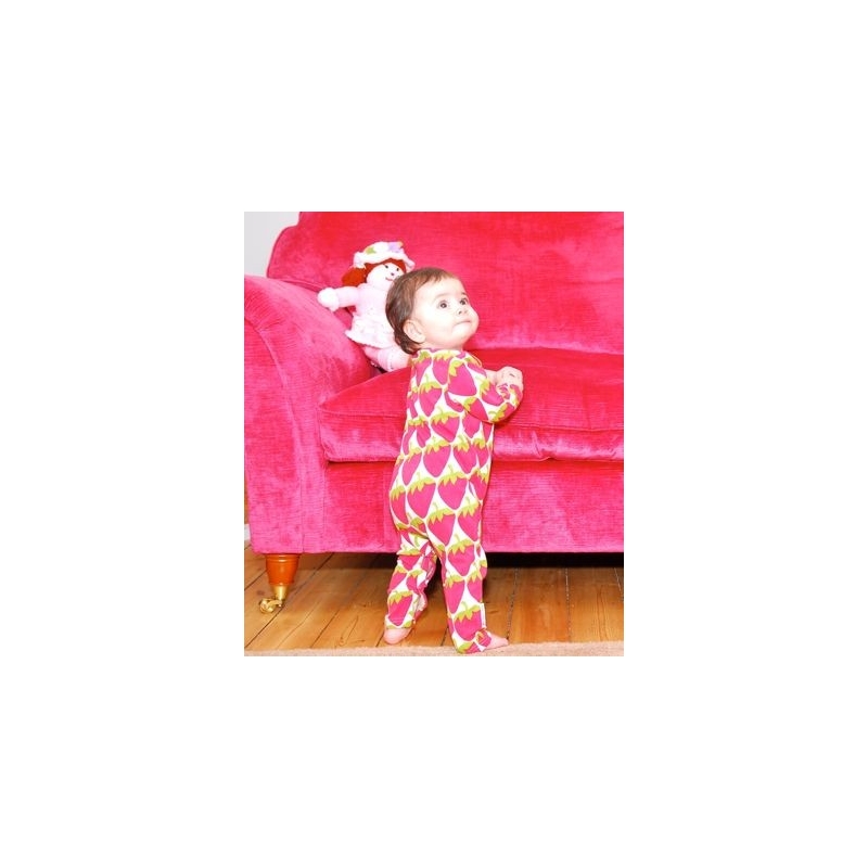 Con el pijama Strawberries de Beauty & The Bib tu bebé será el más fashion a la hora de irse a la cama. Está fabricado en algodón con un diseño de fresas de color rosa sobre fondo blanco, manga larga, cuello redondo con ribete y multicierres a presión.