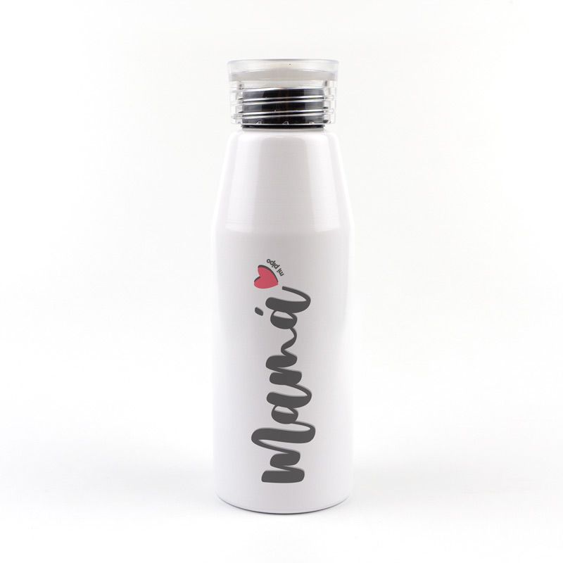 - Material: botella de alumino. El tapón incluye asa de silicona para su transporte.