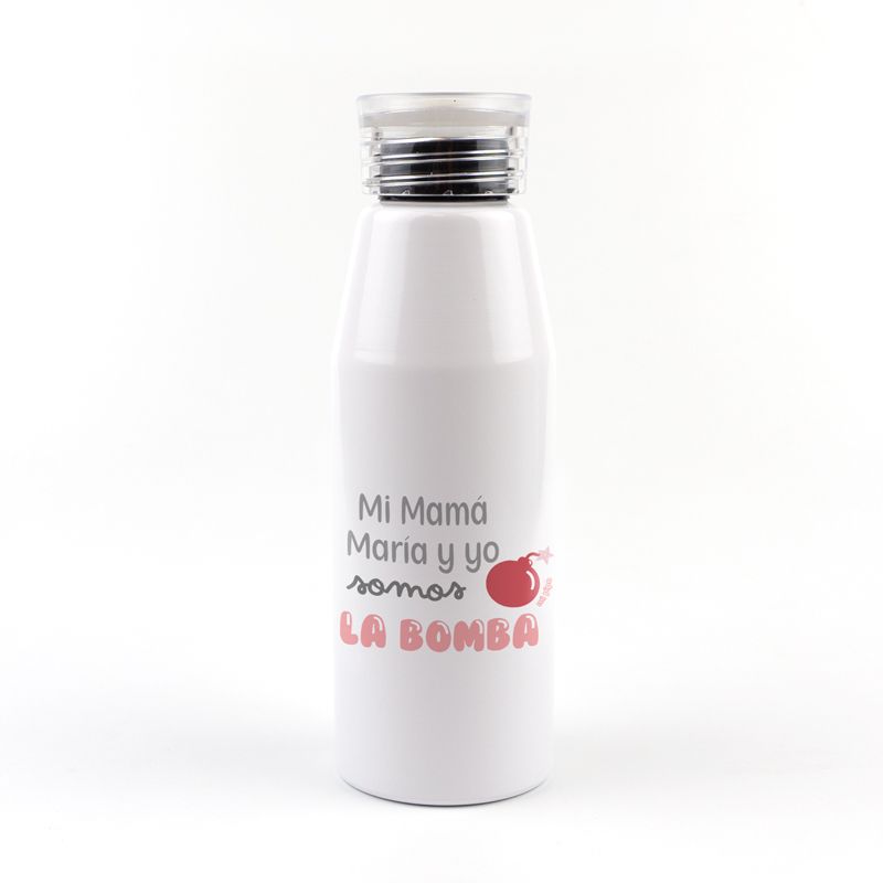 Botella Aluminio personalizada Mi mamá (Nombre) y yo somos la bomba