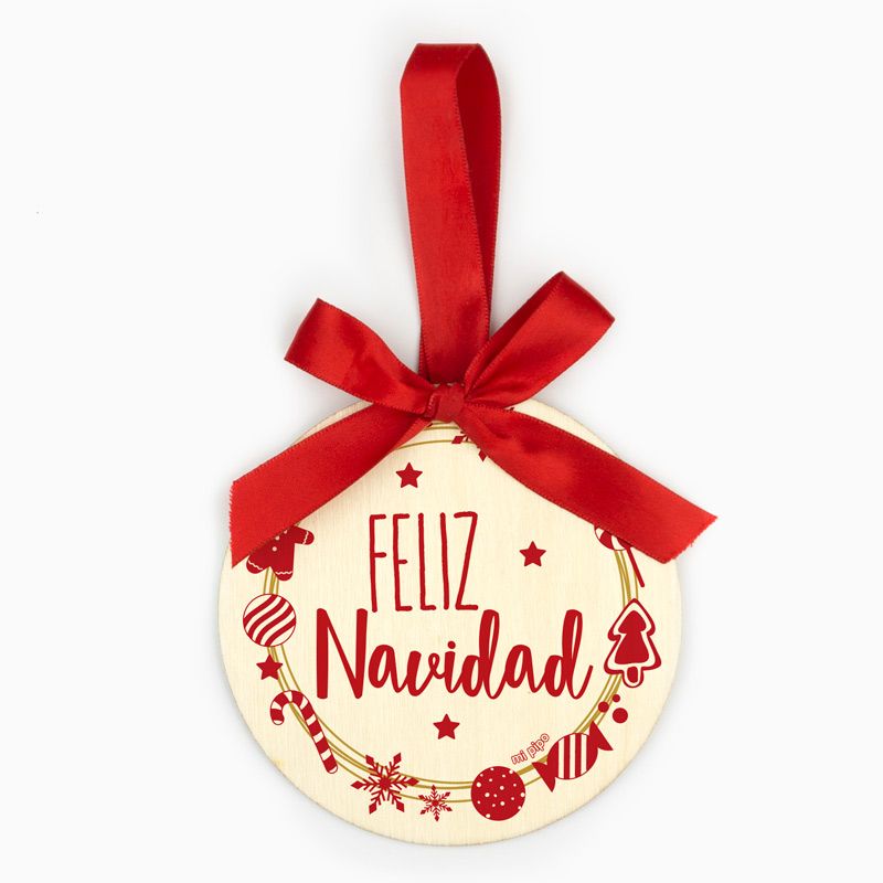 Bola Navidad MADERA Corona navideña, Feliz Navidad