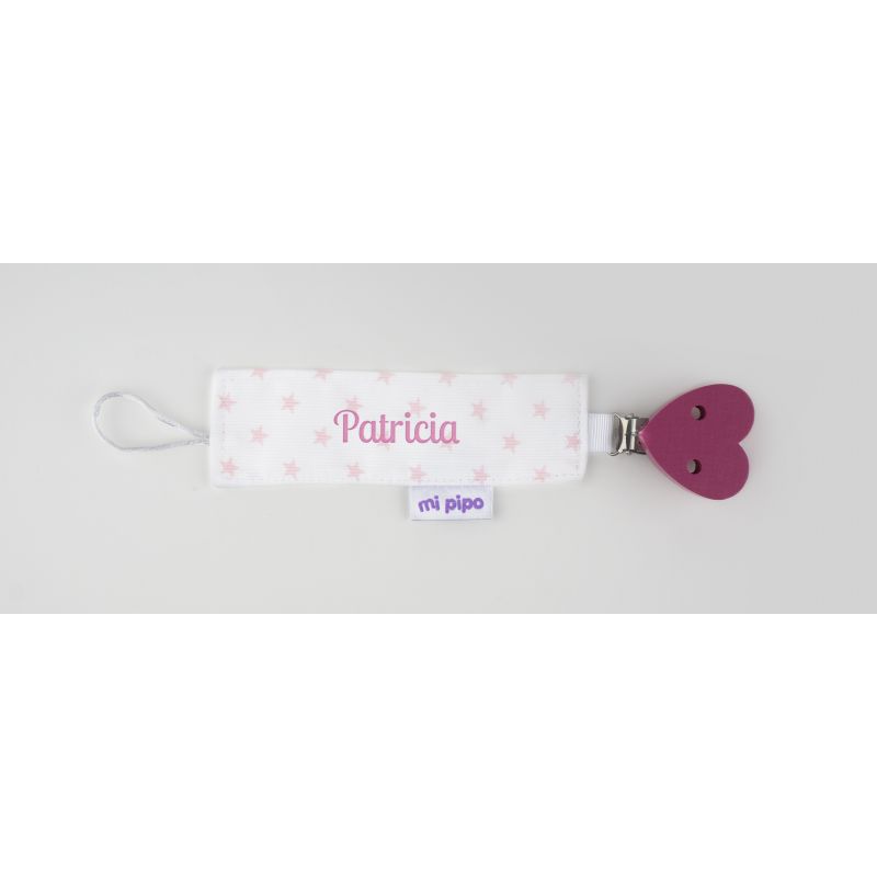 Broche Pinza Madera Textil Estrellitas Corazón Rosa Personalizado