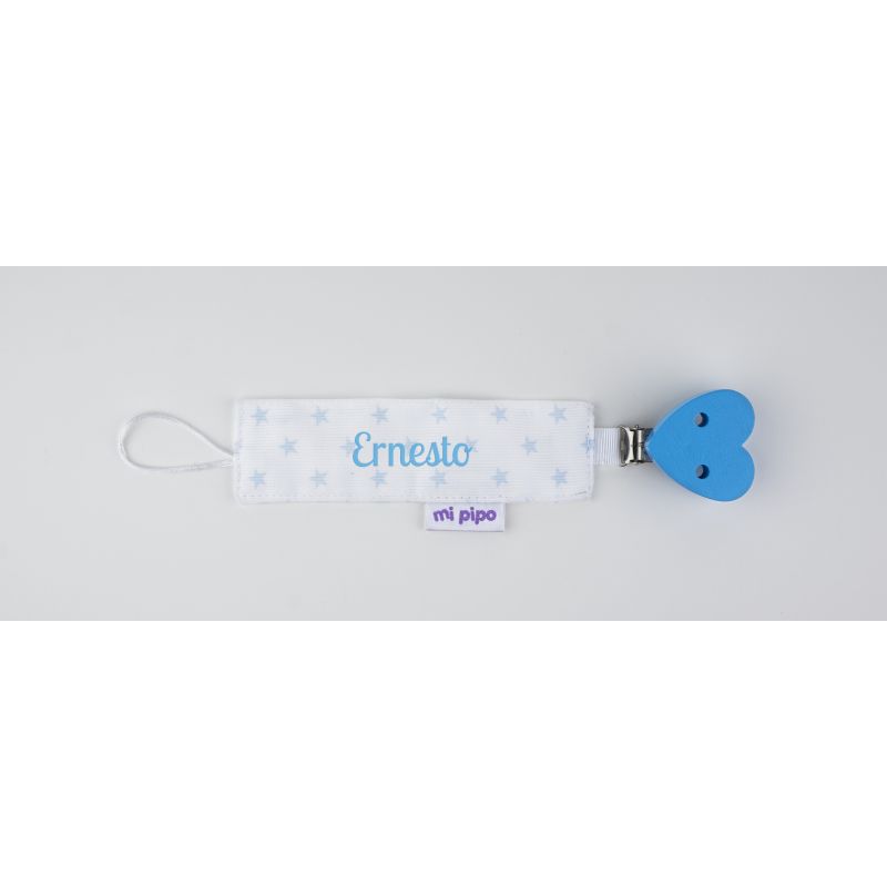 Broche Pinza Madera Textil Estrellitas Corazón Azul Personalizado