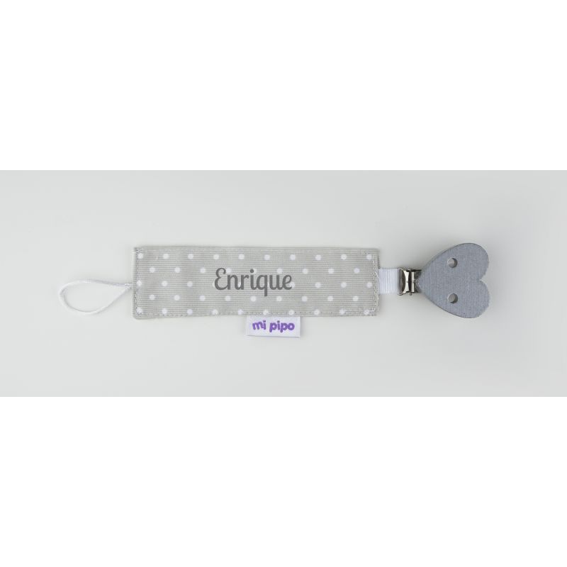 Broche Pinza Madera Textil Topitos Corazón Gris Personalizado