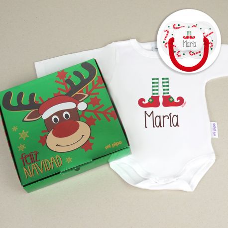 - Body Babidu blanco, con estampado con dibujo de Elfo, a elegir de manga larga o corta, talla 1 ó 6m.