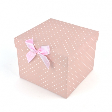 - Fabricada en cartón y con estampado de topitos rosa