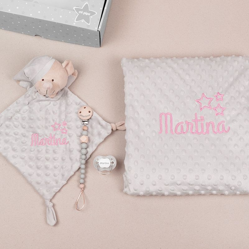 - La manta y dou-dou se pueden personalizar solo con el nombre o añadir un dibujo por un extra (el mismo para las dos piezas)