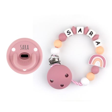 Cajita Chupete Gummy Blush + Cadenita de Silicona Arcoíris Blush personalizada