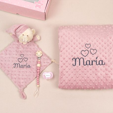 - La manta y dou-dou se pueden personalizar solo con el nombre o añadir un dibujo por un extra (el mismo para las dos piezas)