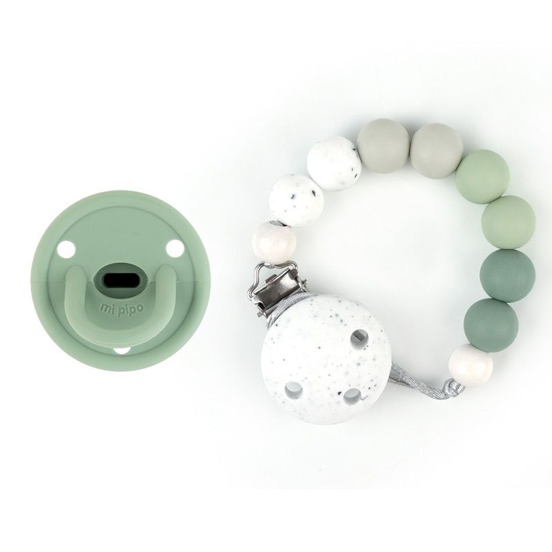 Cajita Chupete Gummy Verde Forest + Cadenita de Silicona Gritty