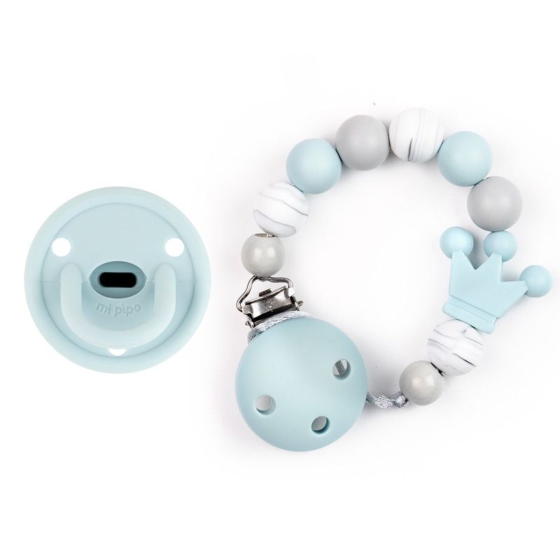 Cajita Chupete Gummy Azul Soft + Cadenita de Silicona Corona