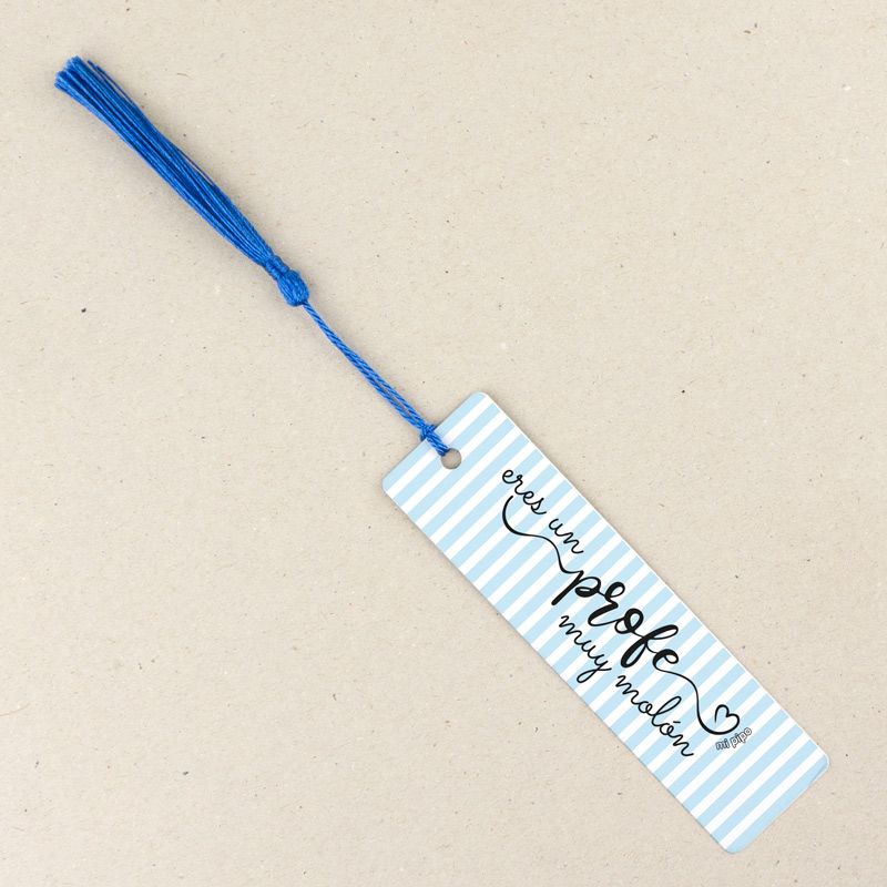 Marcapáginas de aluminio personalizado a una cara con borla en tonos variados según modelo.