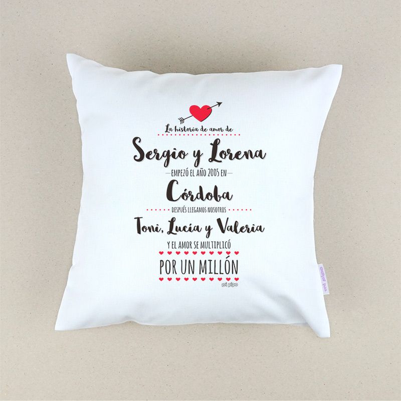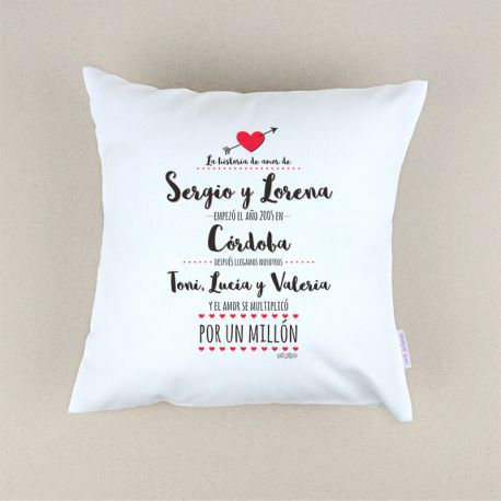 Cojín cuadrado personalizado La historia de Amor Corazón flecha