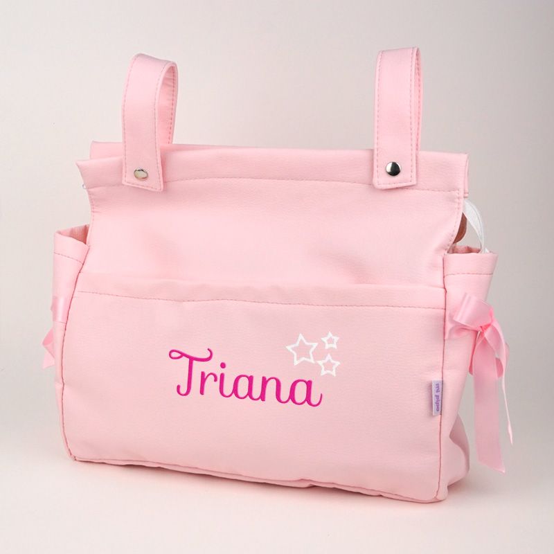 - Lazos de raso laterales al tono del bolso (no se pueden cambiar ni quitar)