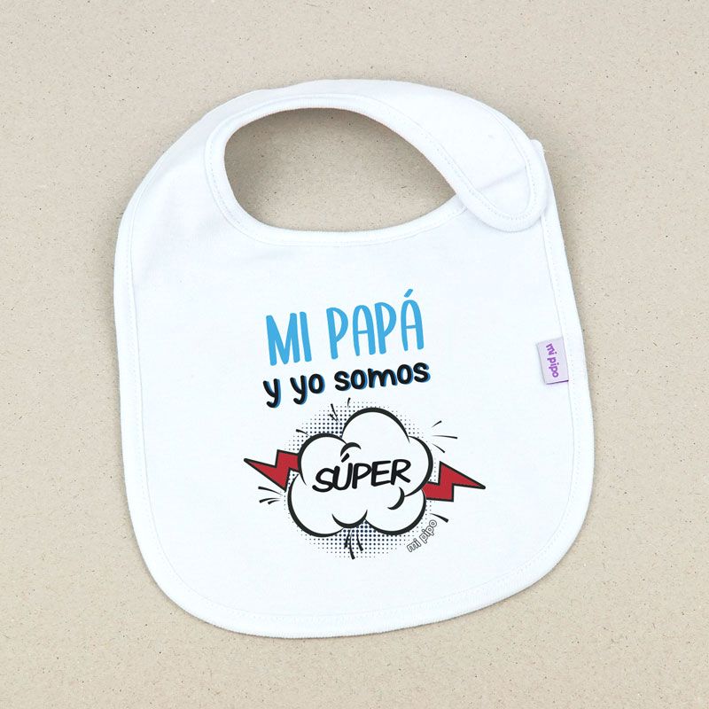 Babero Divertido Mi Papá y yo somos Súper Ver más grande
