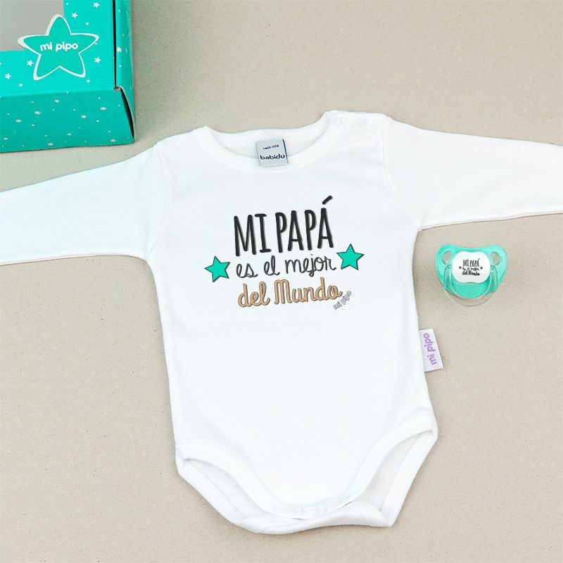 Cajita Divertida Body + Chupete Mi Papá es el mejor del mundo