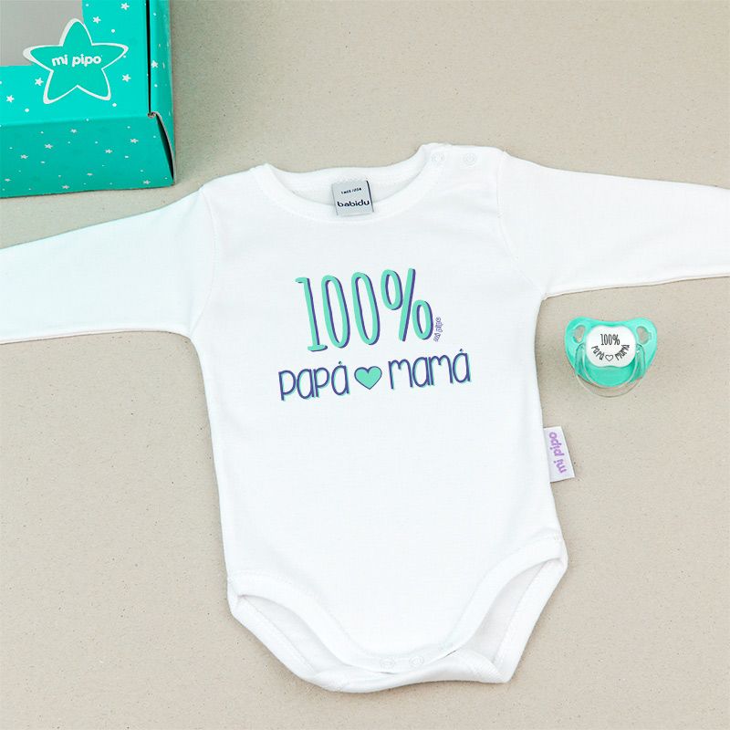 Cajita Divertida Body + Chupete 100% Papá-Mamá Menta