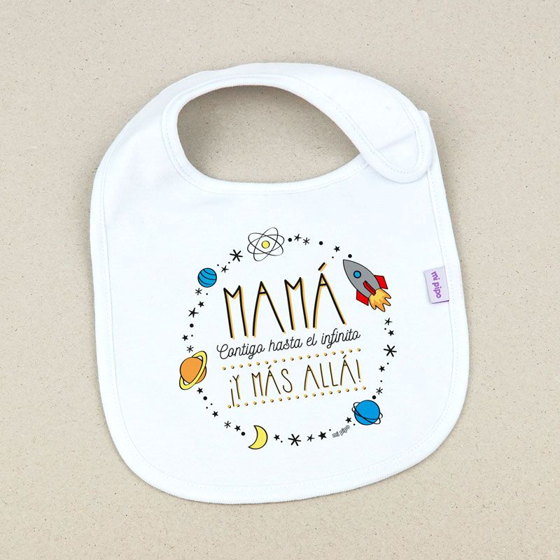 Babero Divertido Mamá contigo hasta el infinito y más allá