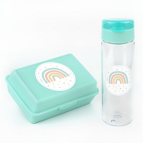 Pack Botella 600ml + Cajita Porta Alimentos Arcoíris Soft Menta