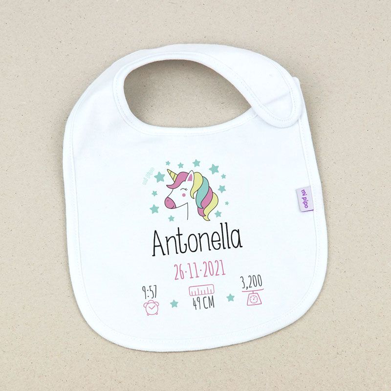 Babero Datos Nacimiento Unicornio