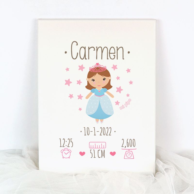 Lienzo Datos Nacimiento Corona Rosa Ver más grande