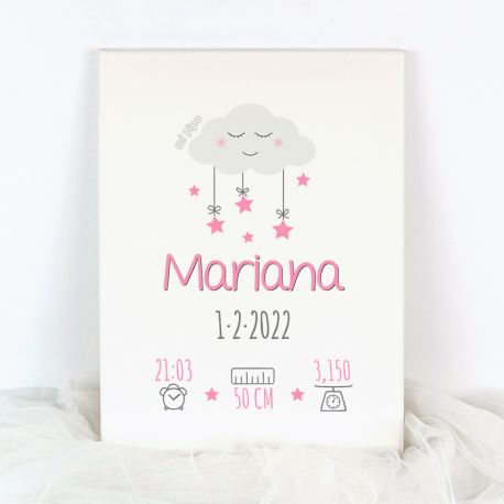 Lienzo Datos Nacimiento Nube Rosa Ver más grande