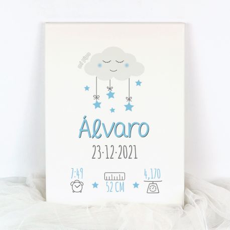 Lienzo Datos Nacimiento Nube Azul Ver más grande