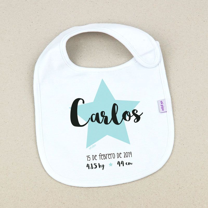 Babero Datos Nacimiento Estrella Menta Ver más grande