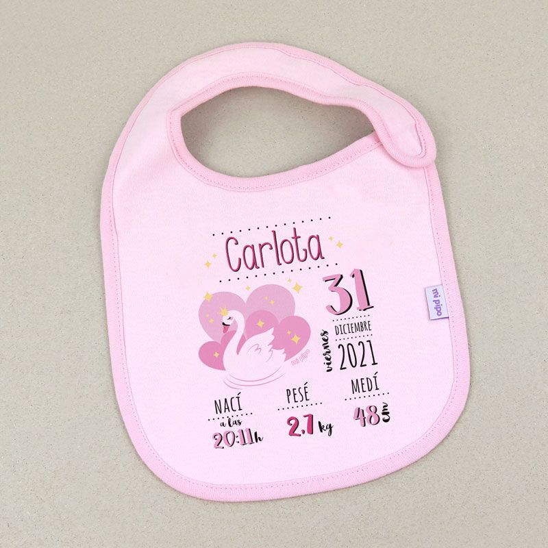 Babero Datos Nacimiento Cisne