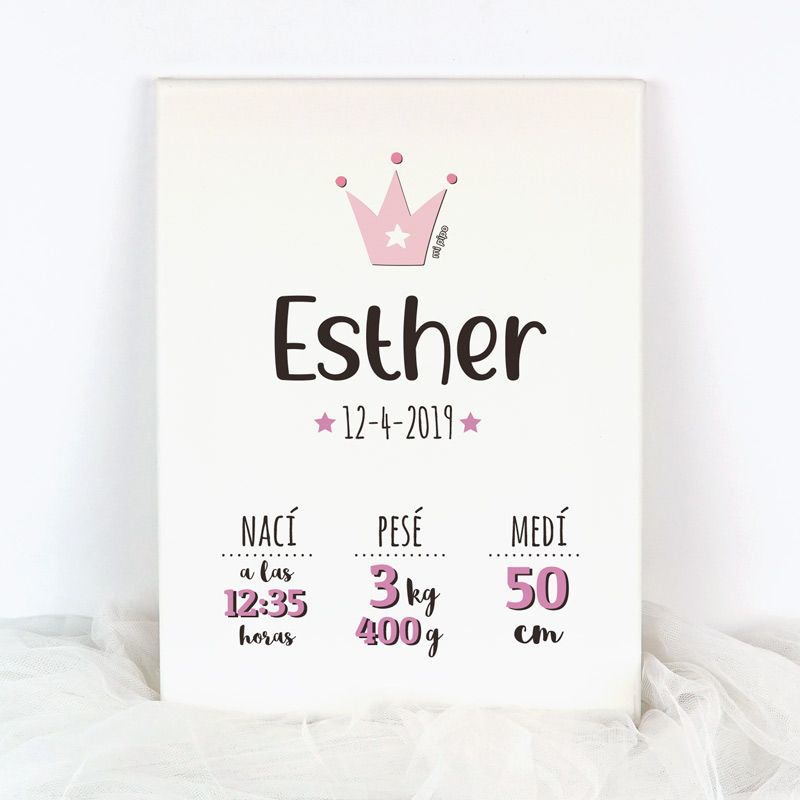 Lienzo Datos Nacimiento Corona Rosa