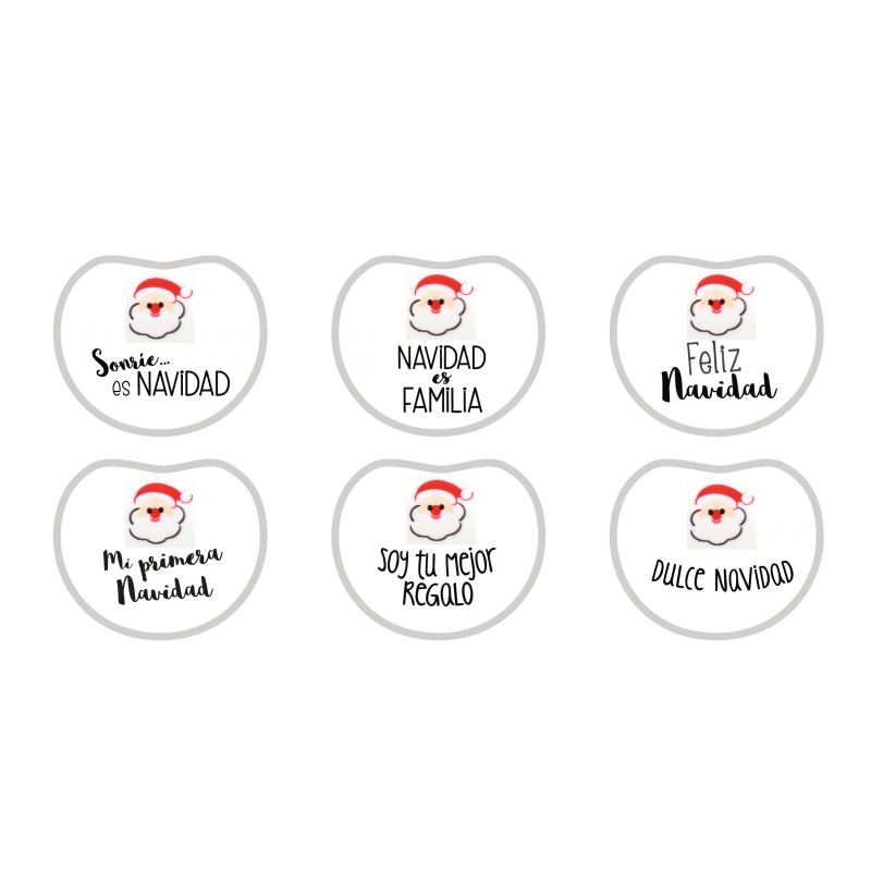 Cajita Chupete Baby Deco Papá Noel + Cadenita de silicona Papa Noel Rojo, texto a elegir