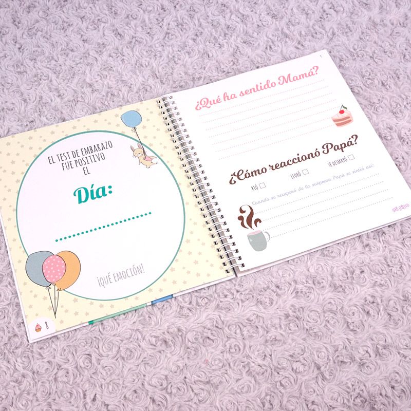 - Diario para relatar la historia del embarazo en 44 páginas.