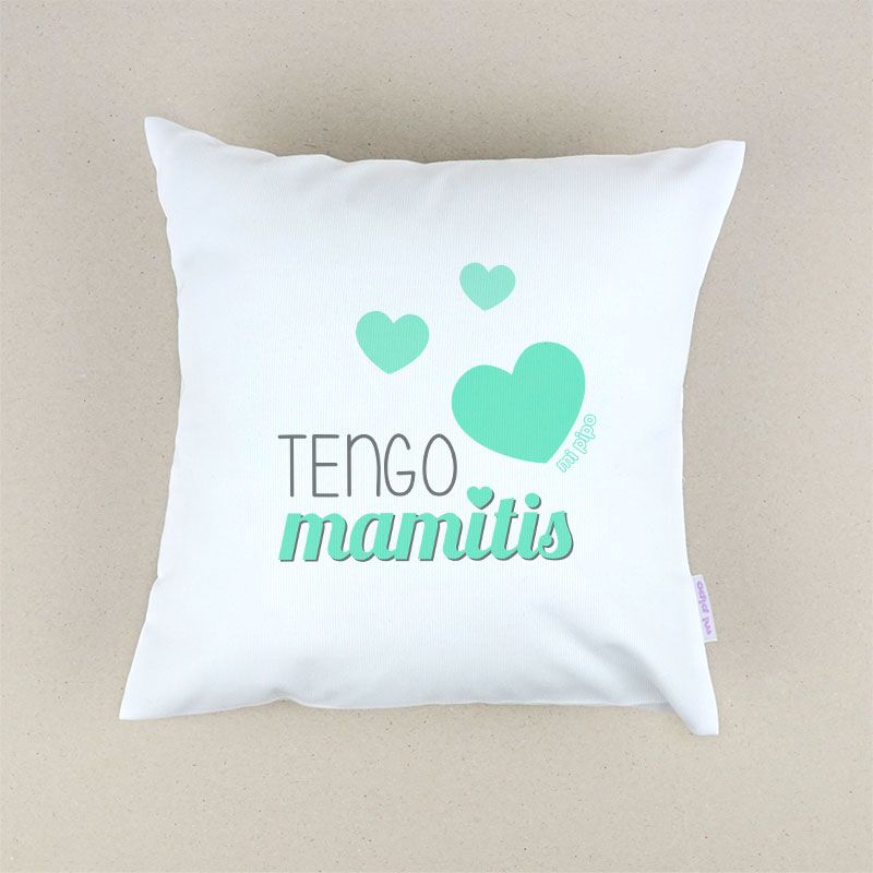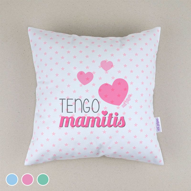 Cojín Tengo Mamitis Menta, Azul o Rosa