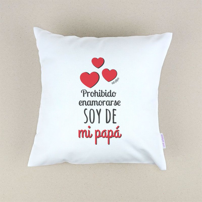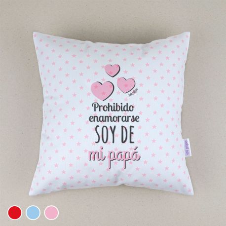 Cojín Prohibido enamorarse, soy de mi Papá Rojo, Azul o Rosa