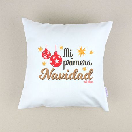 Cojín Navideño Mi primera Navidad bolas