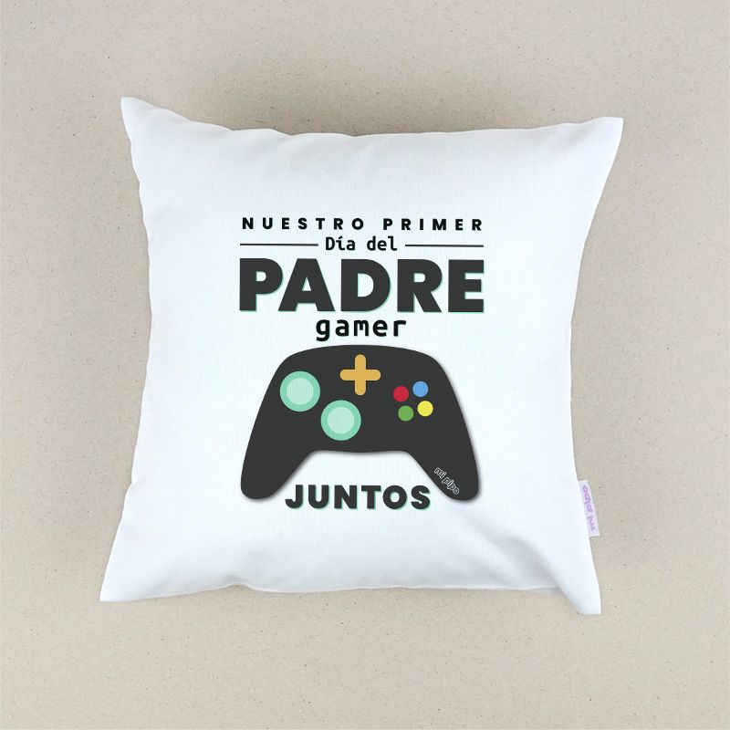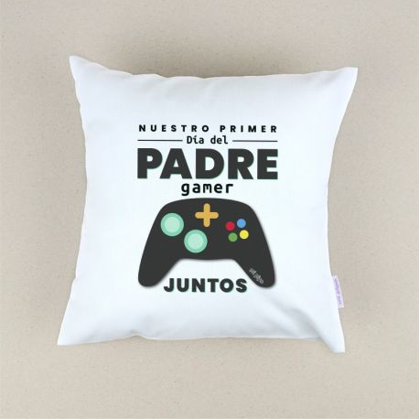 Cojín cuadrado piqué Nuestro primer día del Padre Gamer juntos