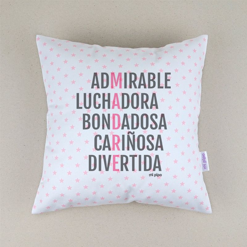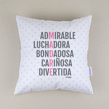 Cojín cuadrado piqué Madre Adjetivos Rosa